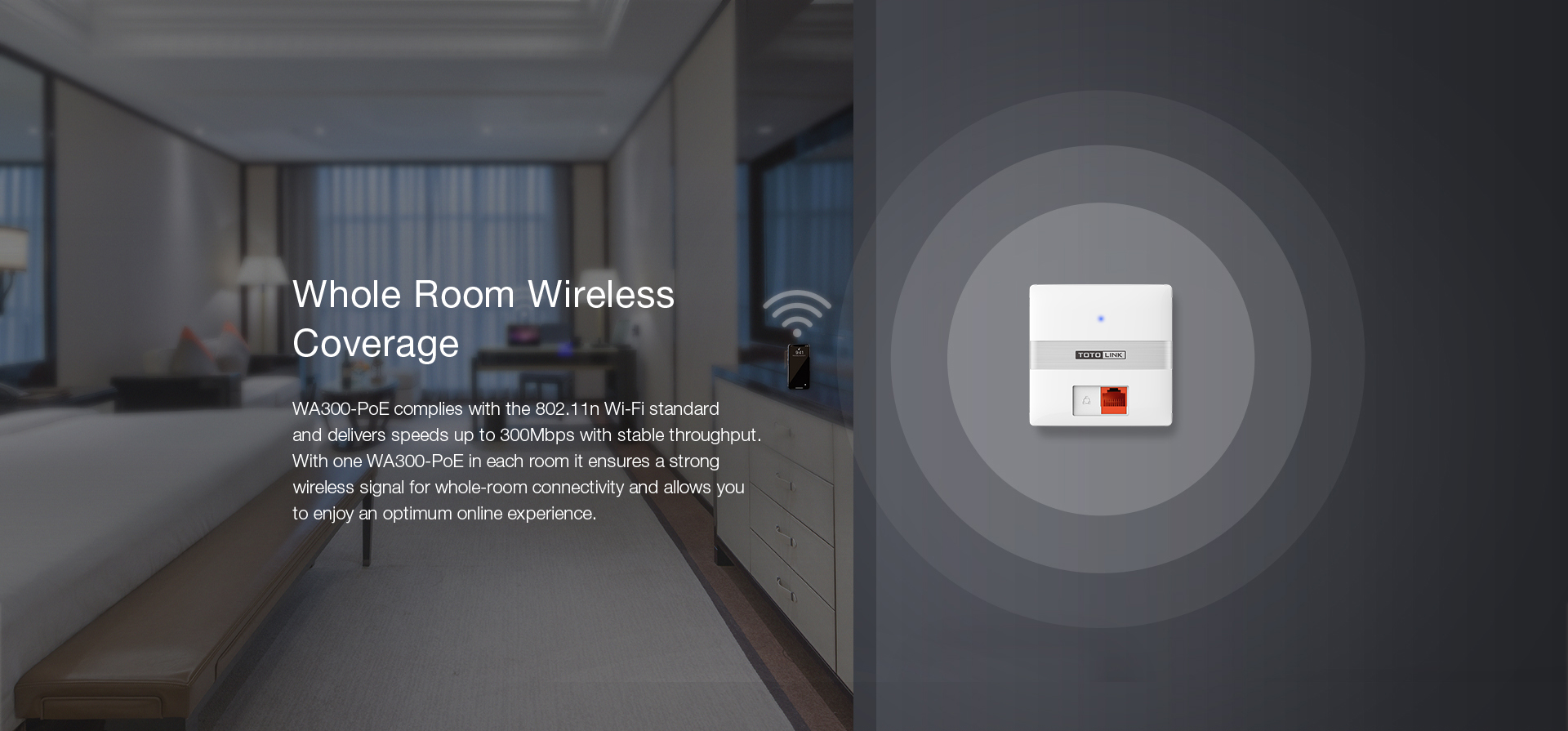 TOTOLINK WA300-PoE is a high-performance in-wall wireless AP.