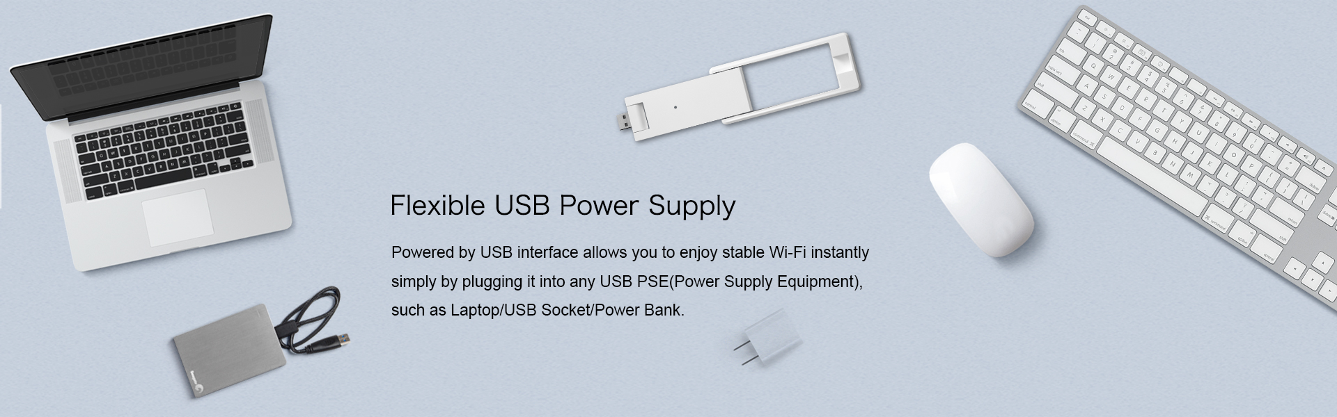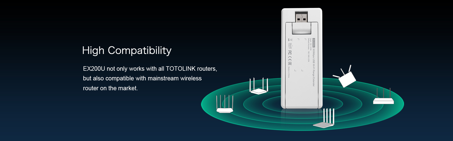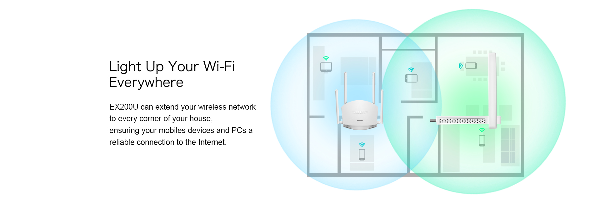 The external two antennas and 300Mbps data transfer rate ensure stable wireless signal and enable you to enjoy fast expanded Wi-Fi throughout your house or during travelling.