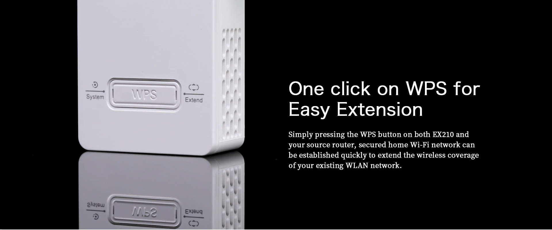 Supports WPS (Wi-Fi Protected Setup) Wi-Fi extension by one-click.