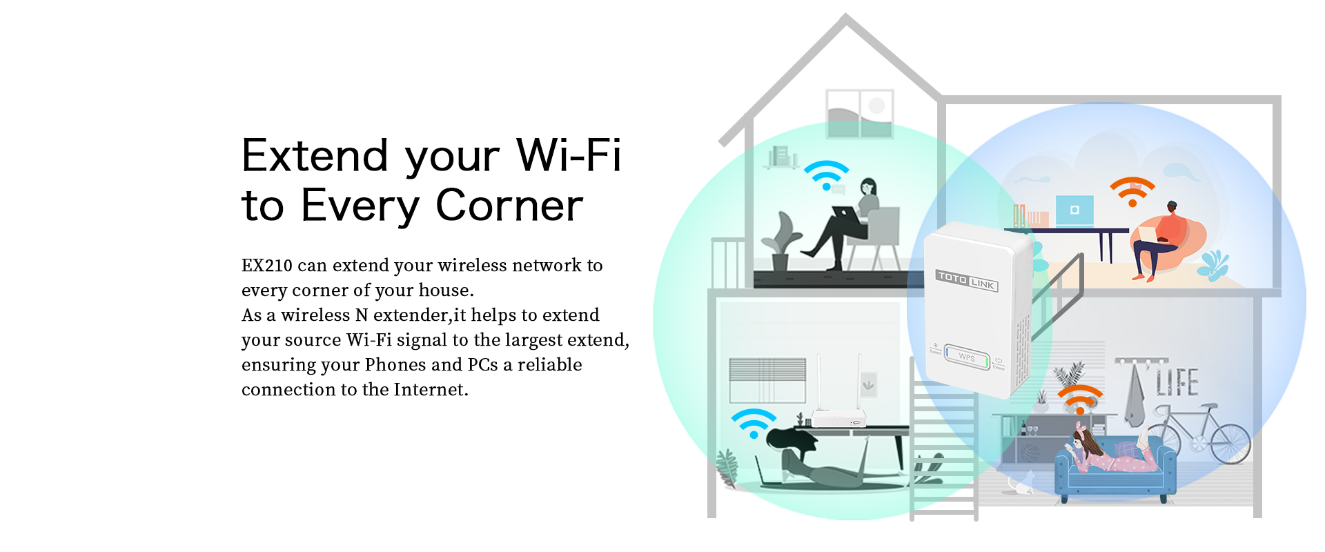 Equipped with signal indicators and high-gain antennas, EX210 would bring the users with more convenience and better Wi-Fi experience.