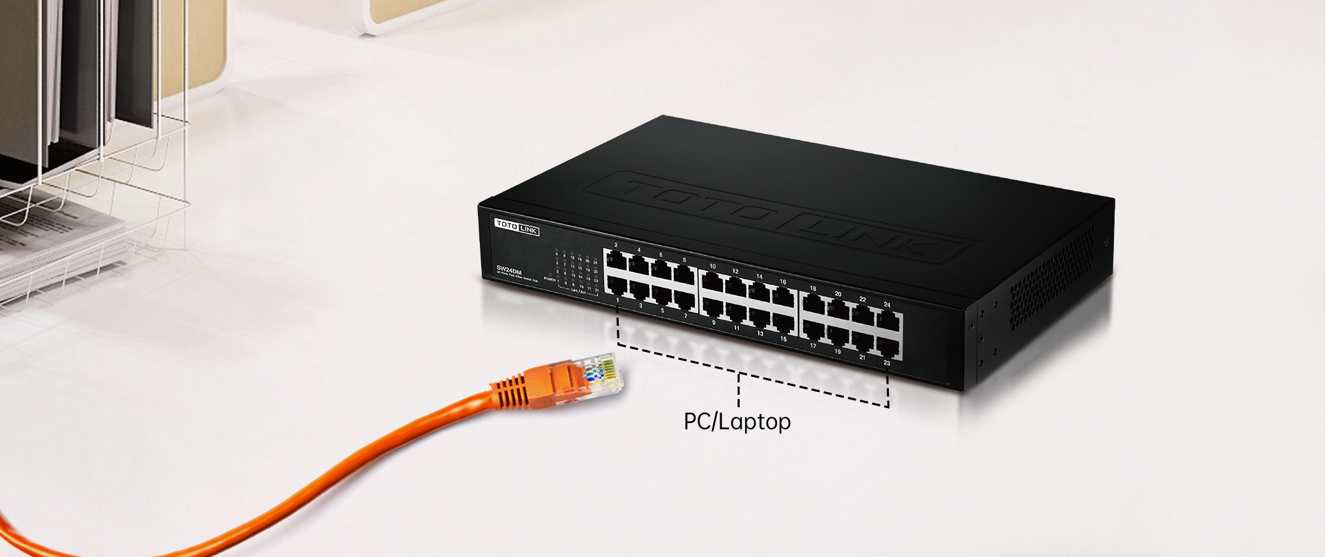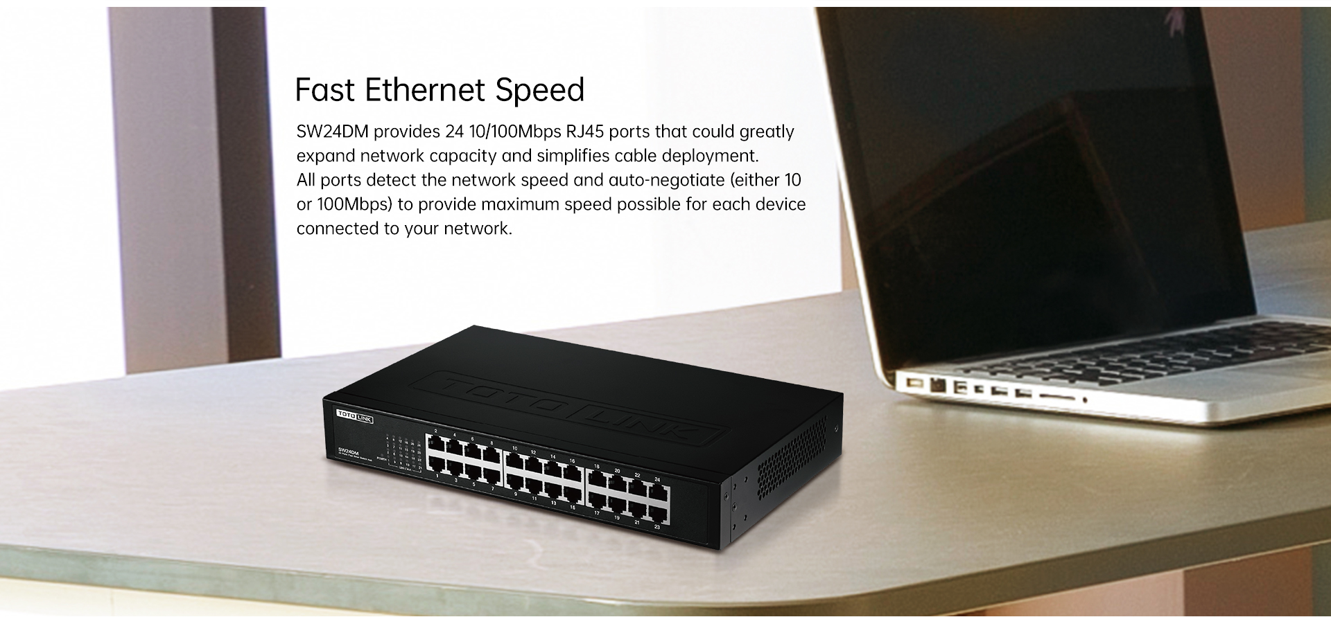 It provides 24 10/100Mbps ports and all ports support auto MDI/MDIX, no need to worry about the cable type, simply plug and play.